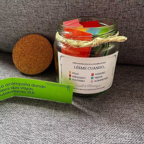 La vida puede traer desafíos, pero la Palabra de Dios brilla con consuelo en cada temporada. Con el Frasco de Versículos Biblicos, cada versículo se convierte en un soplo de calma y un recordatorio de que Su presencia siempre está contigo.