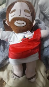 Este Jesus de Peluche es un compañero que no entiende de edades.